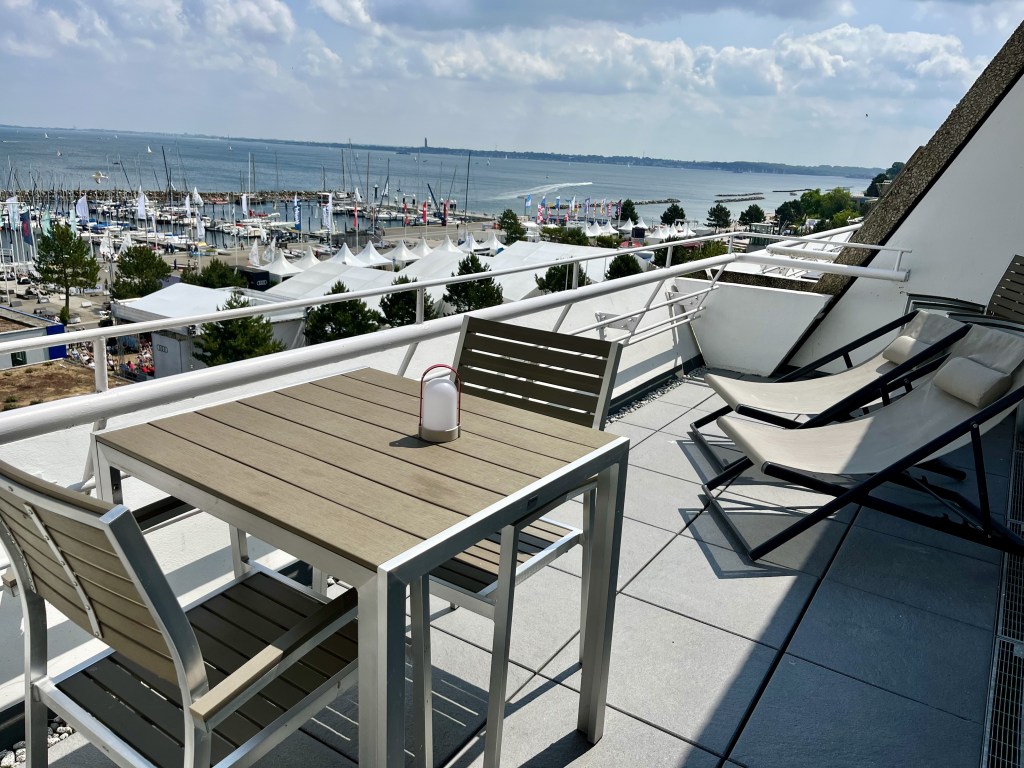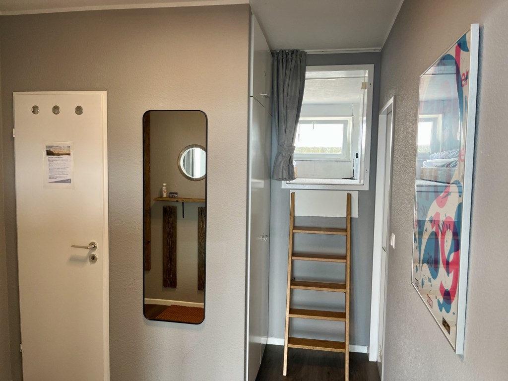 Die Ferienwohnung Fördedeck befindet sich im obersten Stockwerk des Fliegenden Holländers (63 Stufen) mit direktem Meerblick und Blick auf den Olympiahafen Schilksee, den Strand sowie die Kieler Förde. Neben dem offenem Wohn- und Essbereich, besteht die Wohnung aus einem Bad, einem Flur sowie einer Schlafkoje mit ca. 1.20 m Deckenhöhe. Auch im Wohnzimmer kann das Schlafsofa mit integriertem Bett inklusive Lattenrost genutzt werden.